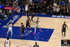 真是自信!埃奇库姆突破迎着两个人 底线高难度漂移中投命中!