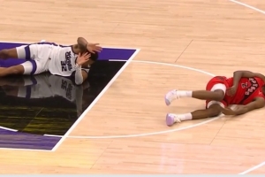 危险动作!考德威尔倒地拉扯莫格博腿部致后者摔倒 被吹一级恶意