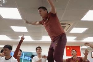 央视足球之夜放出了更衣室庆祝的视频,安东尼奥在弟子们起哄声中站在桌子上,转圈庆祝大喊:VAMOS