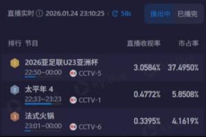 全民关注!U23国足比赛才刚开场,收视率已经破3!且在不断上升