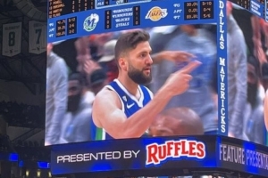 轮到你了!独行侠迎战湖人首节 暂停时播放短片致敬旧将克莱伯