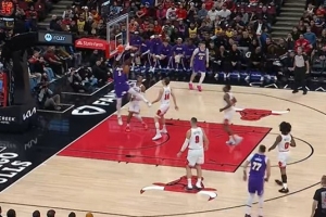 被贴得很紧!詹姆斯持球转身搂倒许尔特 被吹进攻犯规