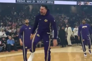 试图证明自己!东契奇赛前尝试胯下扣篮 结果下了个蛋