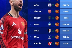 曼联1月冬窗引援花费排行:B费6500万欧第一,维迪奇1050万欧第九