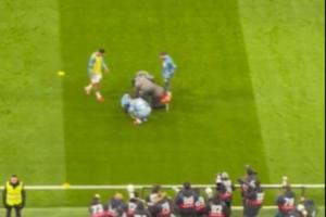 希望无大碍!姆巴佩热身时遭赫伊森误伤,接受治疗一瘸一拐起身