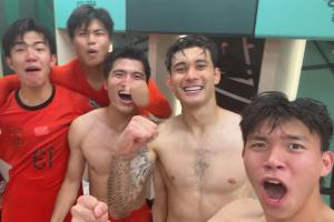 牛!U23国足更衣室狂欢,王钰栋与拜合拉木等人赤裸大喊庆祝!