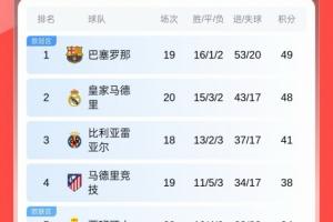 积分榜:皇马先赛落后巴萨1分,巴萨本轮客场挑战皇家社会
