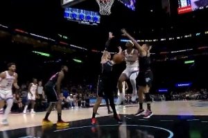 足篮两开花!梅尔顿突破上篮打成2+1 落地再来个头球争顶