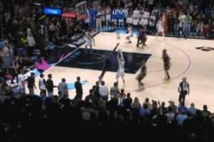 没有绝杀成功!卡鲁索左侧弧顶接球出手压哨三分打板未能命中