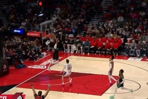 跨越半场!乐福中线附近长传助飞夏普空接暴扣