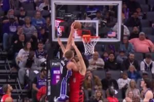 杨瀚森和队友沟通失误 被迫补防 惨遭小萨正面隔扣!