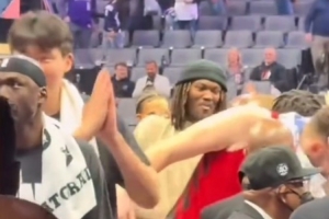 心情不错!杨瀚森赛后与杜普·里斯握手 双手合十答谢球迷