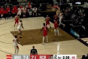 真够远的!阿伦弧顶接球加长两步直接命中三分球
