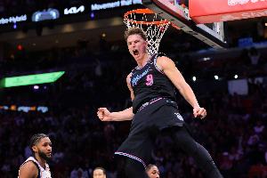 上半场,热火球员拉松表现出色,进攻端弹无虚发还能串联球队,在13分钟的时间里,投篮4中4,拿到8分4篮板8助攻1抢断的数据,正负值+16两队最高。
