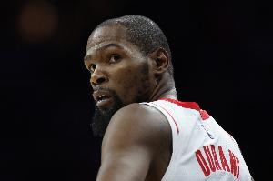 喜笑颜开!杜兰特外线开火连续三分命中 帮助火箭占据主动
