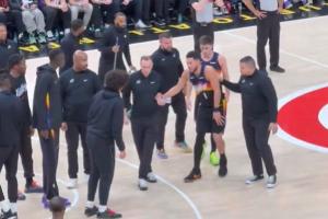 一场伤俩!布克右脚踝扭伤 被队友搀扶回了更衣室!
