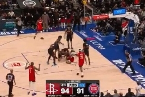 火药味渐浓!小史密斯与斯图尔特争抢篮板倒地纠缠