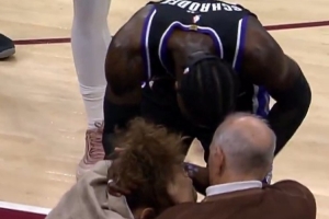 希望无碍!施罗德抢断界外球 无意肘到场边女球迷的头部