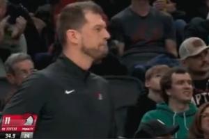 首节给了5分20秒时间!杨瀚森被换下时与主教练斯普利特击掌!