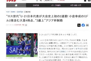 体育资讯1月25日讯 U23亚洲杯决赛,日本队4-0横扫中国队夺冠。赛后,日本各大媒体、体育相关媒体都报道了这次冠军。除了比赛本身,许多媒体都将眼光放在了这支队伍的平均年龄上。