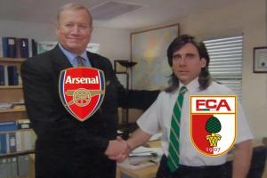 奥格斯堡晒与阿森纳握手梗图:赛季至今仅2支球队击败拜仁@阿森纳