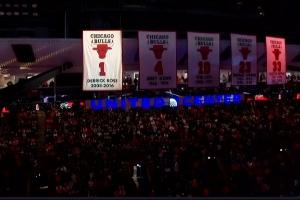 与乔皮并列!罗斯公牛1号球衣高挂联合中心上空 队史第5位