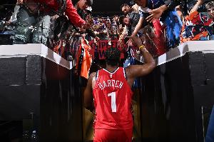 首节比赛,哈登状态上佳,4投3中,三分3中3,罚球5中5,爆砍14分,另有4板2助,正负值+24!