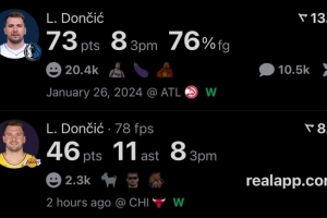这是卢卡日?东契奇两年前的今天砍下73分 今天46分11助