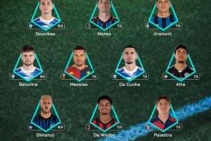 意甲官方本轮最佳阵:迪马尔科领衔,德温特、梅西亚斯在列