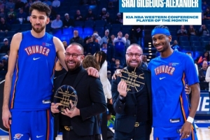 攻防领袖!SGA与切特赛前领取了12月月最佳和月最佳防守球员奖杯