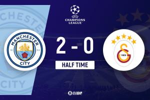 半场-曼城暂2-0加拉塔萨雷 哈兰德破门谢尔基建功多库两助攻+伤退