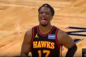 硬汉!奥孔武被布朗肘到&满嘴是血 回更衣室后又回来罚球