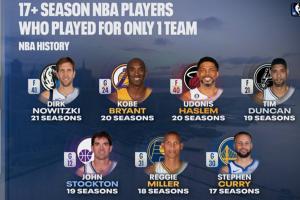 忠诚!一人一城17+赛季名单:司机&科比&邓肯领衔 现役仅库里