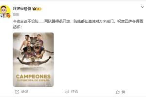 詹俊评西超杯:两队防线都在邀请对方来破门,祝贺巴萨!