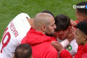 迪亚斯主罚勺子点球直接被扑住,摩洛哥错失绝杀,队友纷纷安慰失点的迪亚斯。