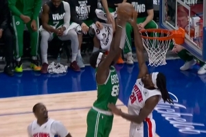 铜墙铁壁!科塔垫步起飞要扣 斯图尔特单臂封锁迎面血帽引爆全场